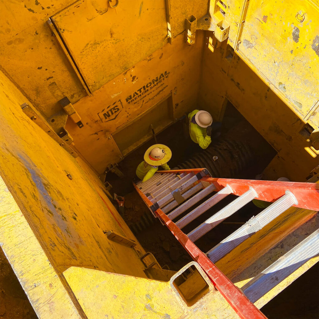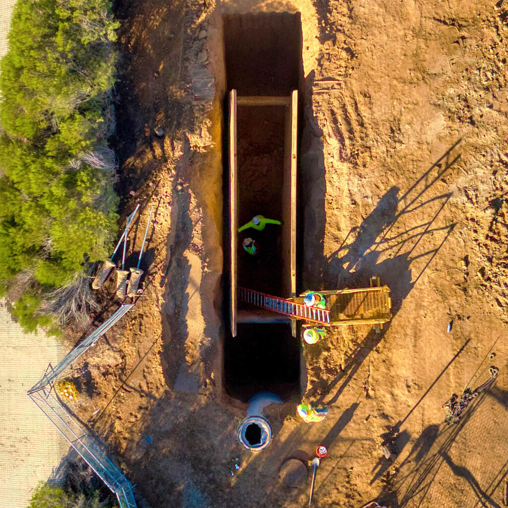 We have invested heavily in technology and have GPS modeling on all our big jobs.  This allows for precise management of materials and results in perfect pipe and tank installation. Many of our excavators have GPS systems for exact accuracy. This allows OSHA slope guidelines to be met every time. We double check surveyors’ accuracy which saves time and money on mistakes and busts.